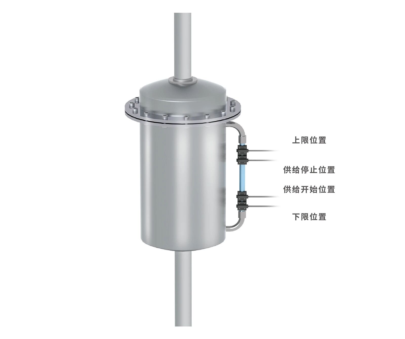 通过侧窗玻璃导管显示液位的情况,并对液位进行限制。