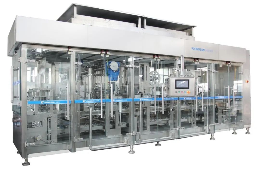 能耗低、占地小、效率高达20000杯/小时,整机自主研发设计,掌握多项独有专利技术,自动化程度高、操作界面简单,售后维护保养方便,市场占有率高。整机高度集合,供杯、落杯、杯除尘、杯杀菌、无菌风置换、灌装、盖杀菌、封口、测漏、出杯,一台机器全搞定,封闭化运行,杀菌彻底无残留,有效避免灌装环节的二次污染。