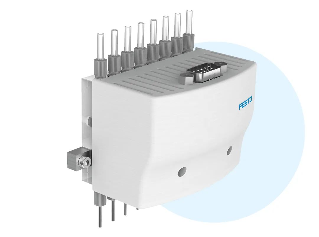 四号“队友”,滴定头,用于精准滴定液体。VTOE 单通道滴定头,可用于单独控制单个通道的剂量,同时也可以根据应用的不同,实现不同定制化配置的选型。除了单通道的应用外,Festo VTOE-8多通道滴定的加入,实现不同液体和不同体积的同步滴定。使自动化操作一气呵成,可分别控制多条通道,精准控制每个阀,从而缩小滴定头之间的差异性,在相同滴定时间内产生相同的滴定体积,实现不同性质的试剂高精度、稳定、快速的滴定,提高滴定效率。