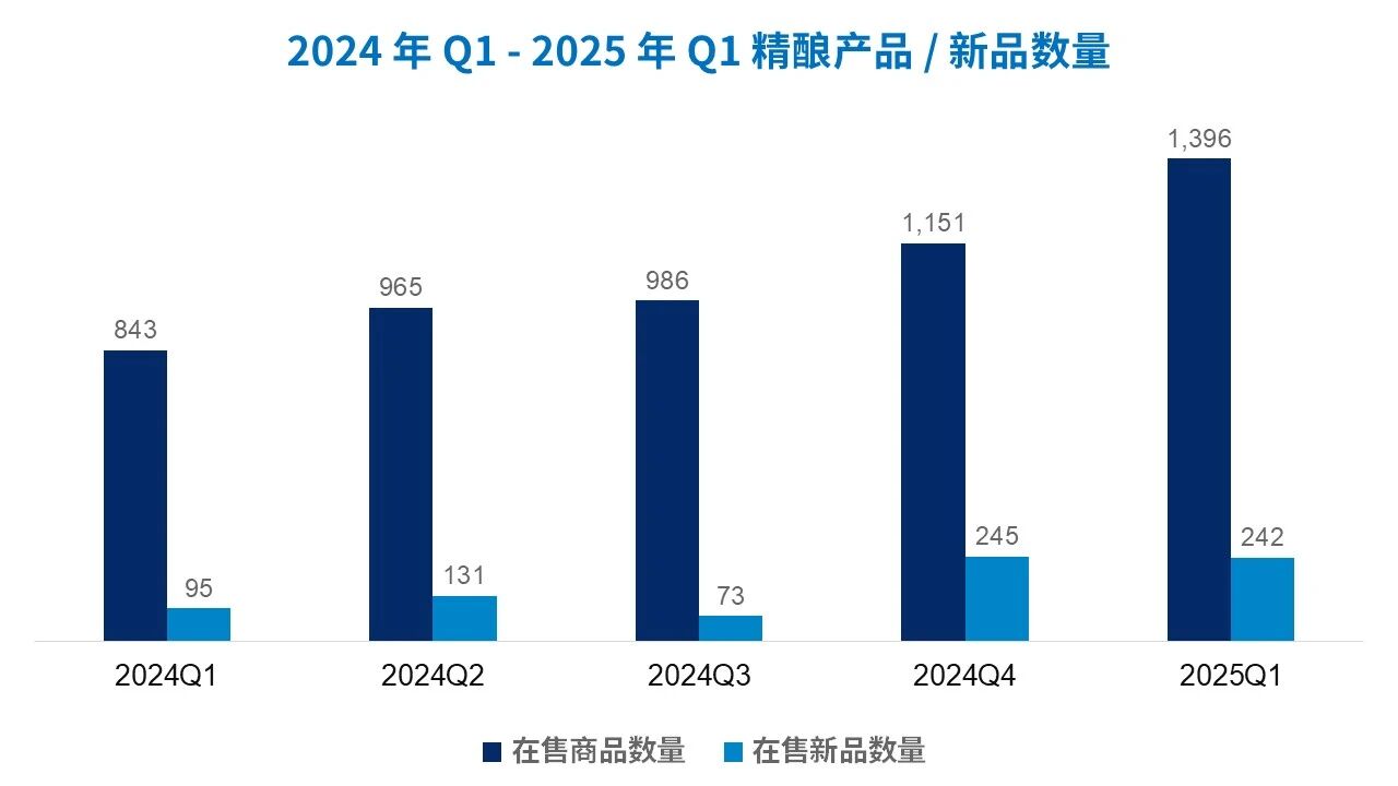 在产品赛道领域,精酿啤酒开始快速崛起,企业数量大幅增长。据线下零售监测机构马上赢数据显示,2024年Q1到2025年Q1期间,在售精酿商品的数量增长65.60%,新品数量则增长154.74%。此外,根据天眼查统计数据(截至2025年8月6日),含有 “精酿啤酒” 业务且注册资金在1亿元内的企业数量已超3985家,近50%的企业成立于3年内。